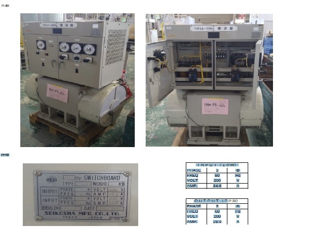 - C3A【棚神イ曙030127-20有】周波数変換器 10KVAサイクル 出カ220V 60Hz 入力200V 50Hz切替 精工社 LYT-10B 本体重量876kg