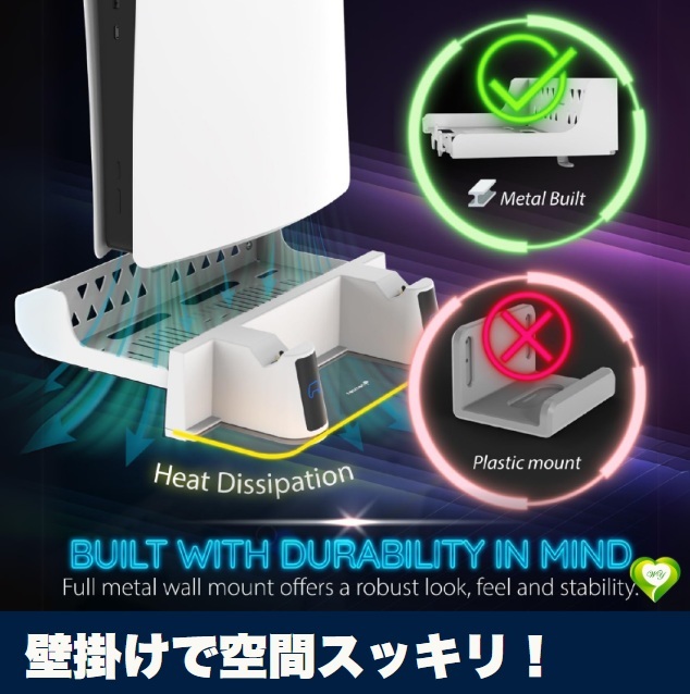 > 【壁掛けでスッキリ収納!】PS5壁掛けスタンド/マウント コントローラー収納対応 省スペース設計 取り付け簡単 人気 おすすめ