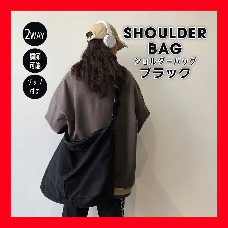 - ブラック ニュースペーパーバッグ ショルダーバッグ 古着 トート ヴィンテージ キャンバス地 黒 6199