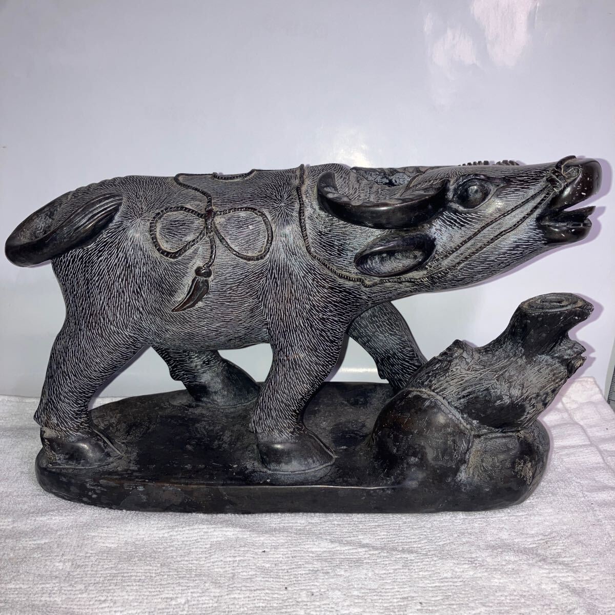 - 中華 中国 骨董 石彫刻 牛 水牛 バッファロー 玉石 寿山石 置物 インテリア オブジェ アンティーク 送料込み