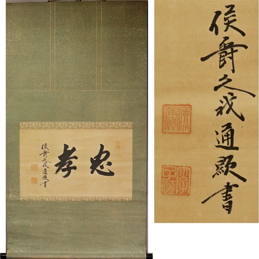 - 《源》【即決・送料無料】侯爵 久我通顕 自筆 横二字書「忠孝」/軸装
