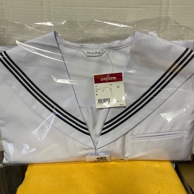 - 【送料無料】スクールパール 白セーラー 長袖 カブリセーラー服 中間服 紺3本線 B2 新品 夏用長袖 中学