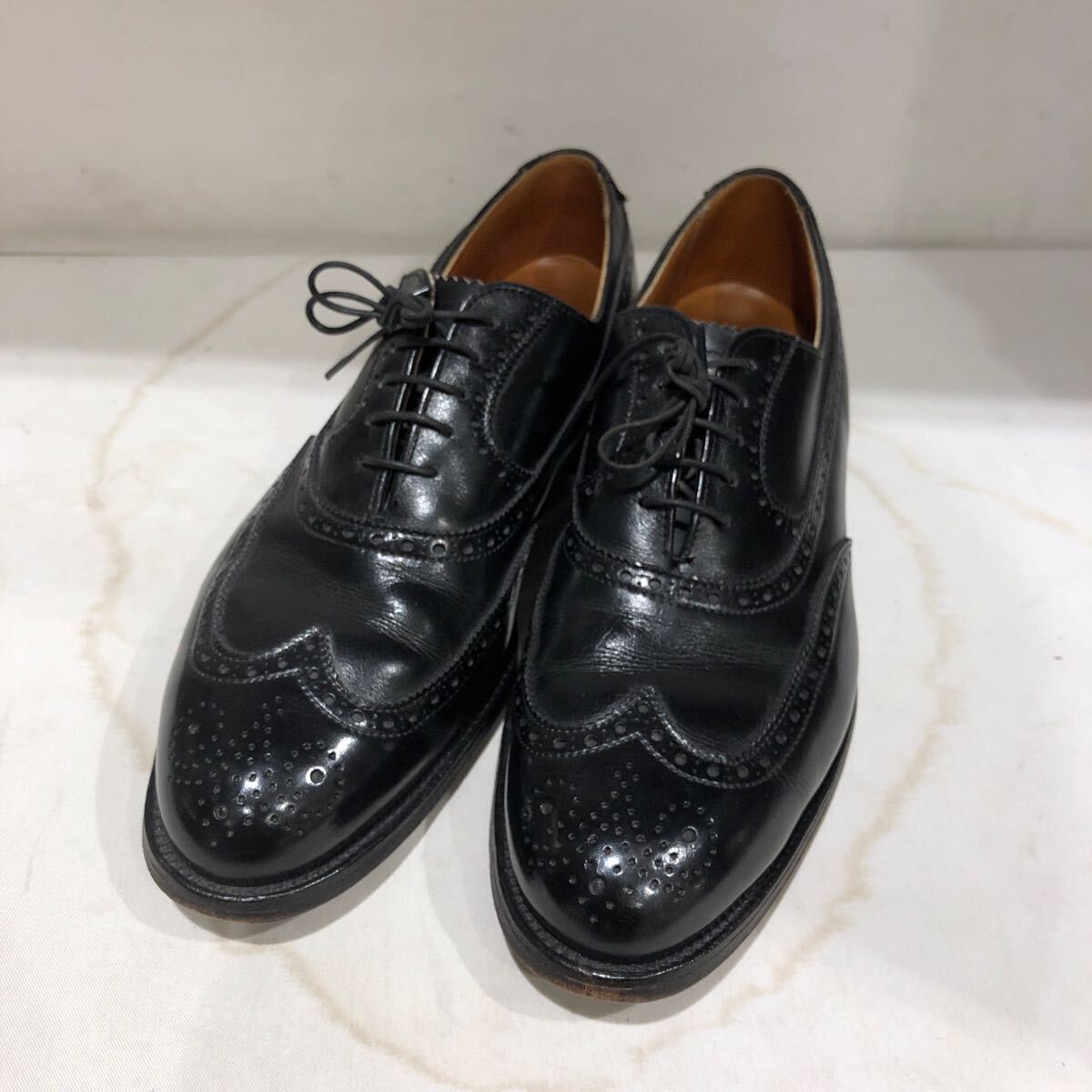- ts20250510【Alden】オールデン ドレスシューズ 革靴 レザー ブラック ウィングチップ huggins shoes 928 履きジワアリ
