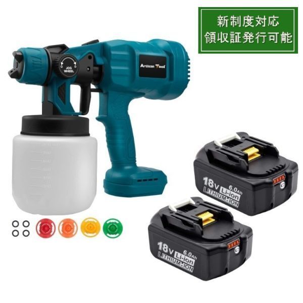 - 【国内発送】■コードレススプレーガン 充電式 ATSG01B 小型電動塗装機 マキタ18Vバッテリー対応+バッテリー2個 新制度対応領収証可