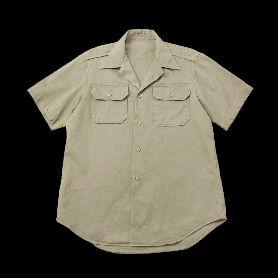 > 60s US ARMY 1968 ビンテージ ミリタリー アーミー コットン チノシャツ カーキ ベトナム戦争 ナム戦 半袖 米軍 軍物 古着 M MEDIUM