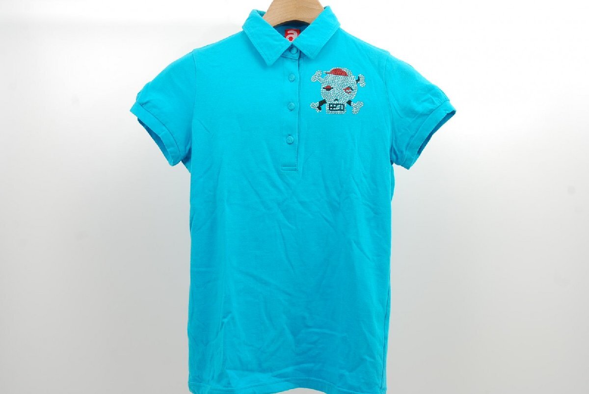 - coco 中古【値下げ】 アルチビオ archivio レディース 半袖ポロシャツ 36(S) 水色 ラインストーン レターパックプラス発送可 62817