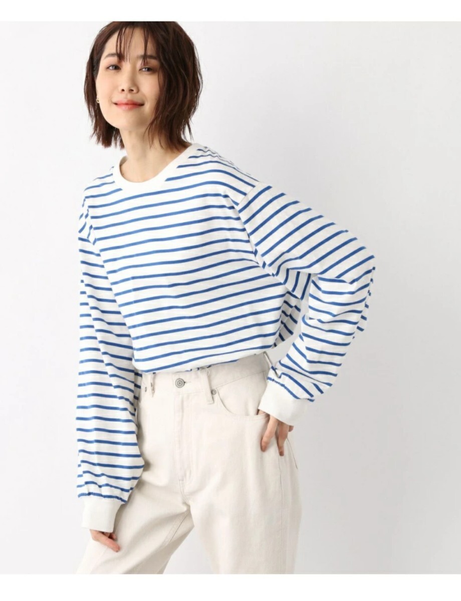 > 新品グローバルワーク抗菌ボリュームロンTブルーボーダー カットソー GLOBAL WORK 長袖 サロペットやワンピースにも