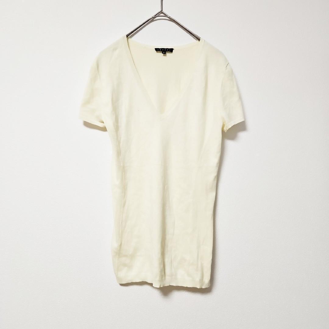- 美品【theory】セオリー Vネック 半袖サマーニット イエロー (M)