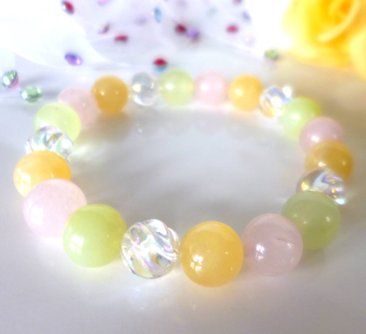 > ☆陽だまり☆パステル☆愛☆ローズクォーツ☆心身調和☆イエロークォーツ☆リラックス☆ニュージェイド☆レインボー☆10mm☆17cm☆