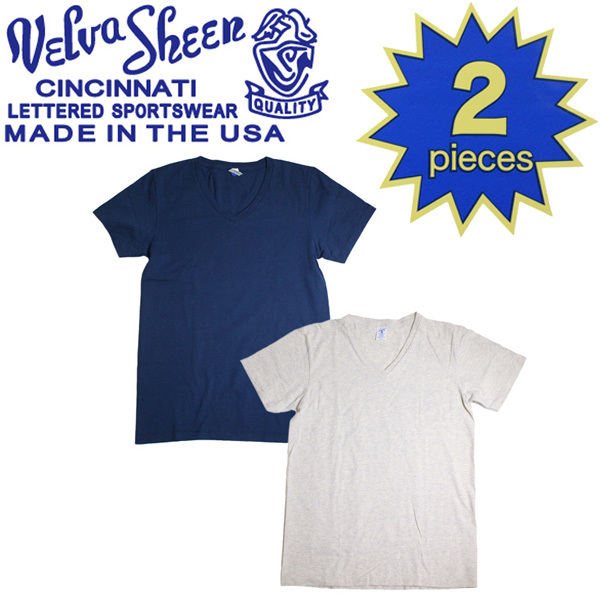 > Velva Sheen (ベルバシーン) 160921 2PAC V/N TEE (半袖 V首 ) VネックTシャツ ポケット無し 2枚組 全10色 VLVS003-ネイビー+オートミール-