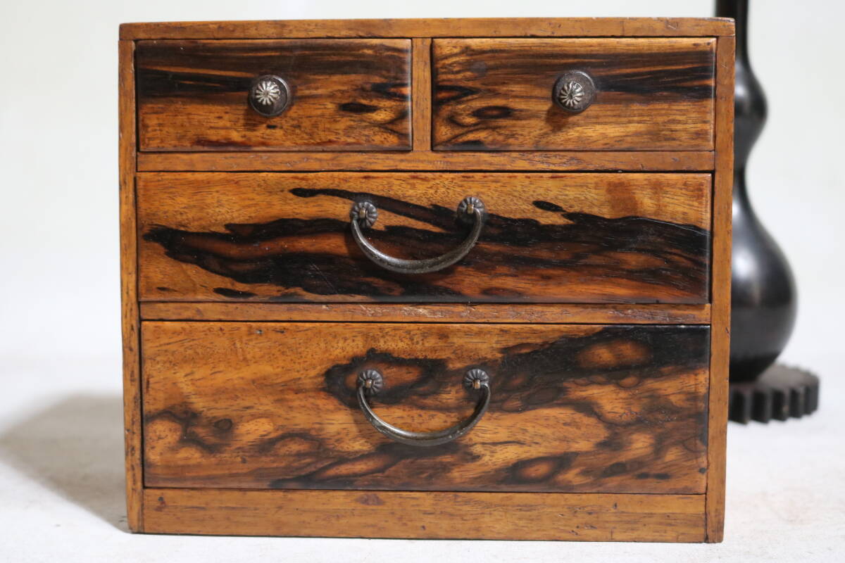 - 【伊董】C63.アンティーク!レトロ!黒柿!古い小抽斗山形県庄内地方黒柿張り針箱大正枠中桐 #小引出し #裁縫箱 #古道具 #和モダン