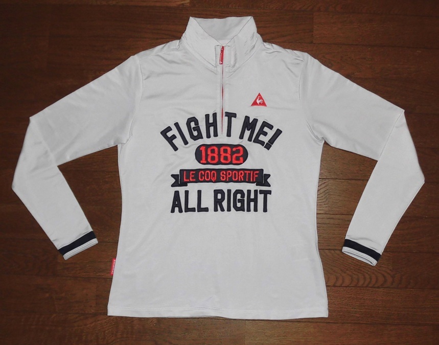 - le coqsportif GOLF ルコック ゴルフ コレクション ハーフジップ ストレッチ 長袖シャツ レディース 刺繍ロゴ WHT L USED 美品