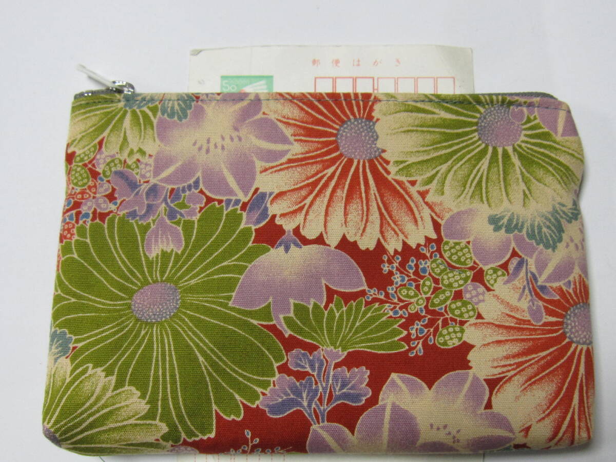 - 手作り 大 ポーチ 着物リメイク 花 模様 華 古布 格安 ハンドメイド 秋 手芸 財布 小物 充電器 眼鏡 数珠 男女 兼用 綿 可愛い お洒落 幅広