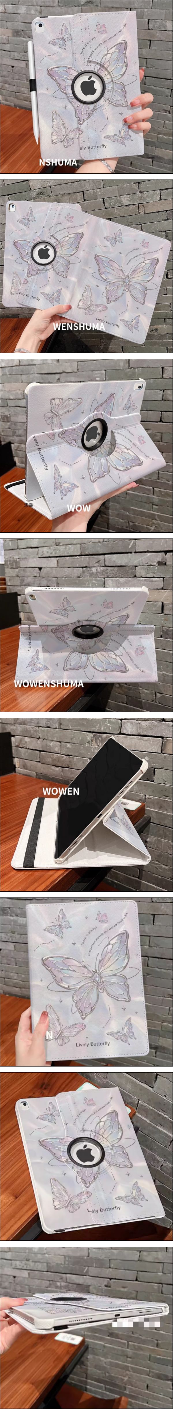 > 11インチiPad Air (M2)ケース iPad Air6 (第六代)保護カバー スタンドタイプ 360度回転 耐衝撃 ペン入れ ハンドストラップ付き かわいい 蝶