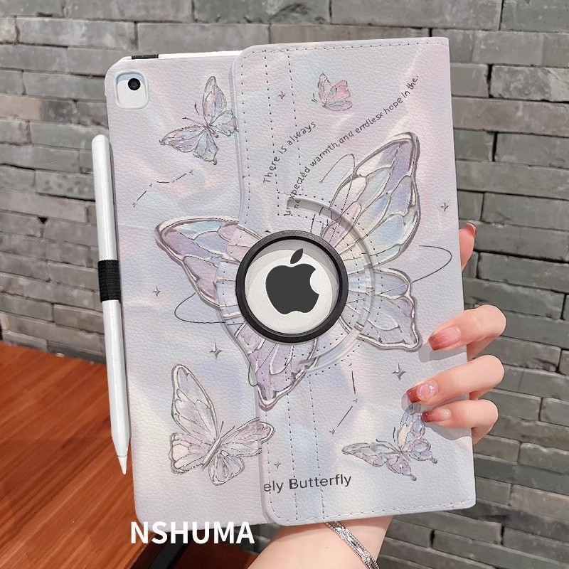 - 11インチiPad Air (M2)ケース iPad Air6 (第六代)保護カバー スタンドタイプ 360度回転 耐衝撃 ペン入れ ハンドストラップ付き かわいい 蝶