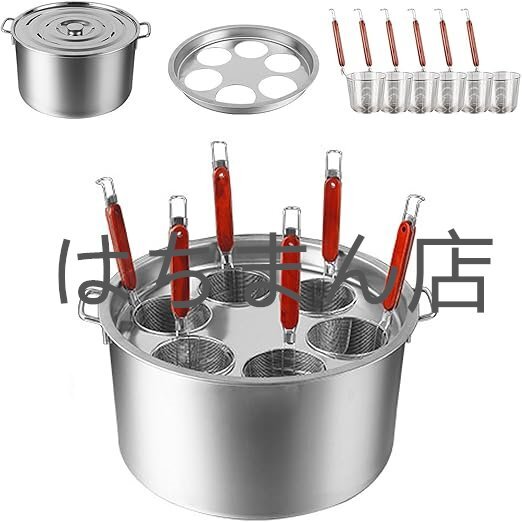- パスタ鍋 鍋 麺茹で そうめん 器 茹麺鍋セット ステンレス カレー鍋 おでんのです鍋 煮込み料理 深型 ガス火対応 50cm-6穴 red