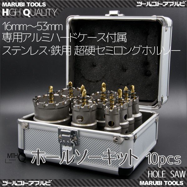 - 超硬ホルソー10セット ホールソー 10pcs ステンレス 鉄用 超硬セミロング HSS ハイス鋼 専用アルミ製ハードケース付き【送料無料】