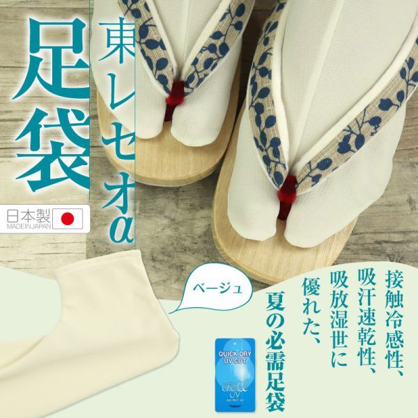 - 【東レ セオa足袋】『ベージュ』 21.5cm-22.0cm UVカット 吸汗 速乾 接触冷感 ベンクール足袋 ストレッチ足袋 こはぜなし 新品