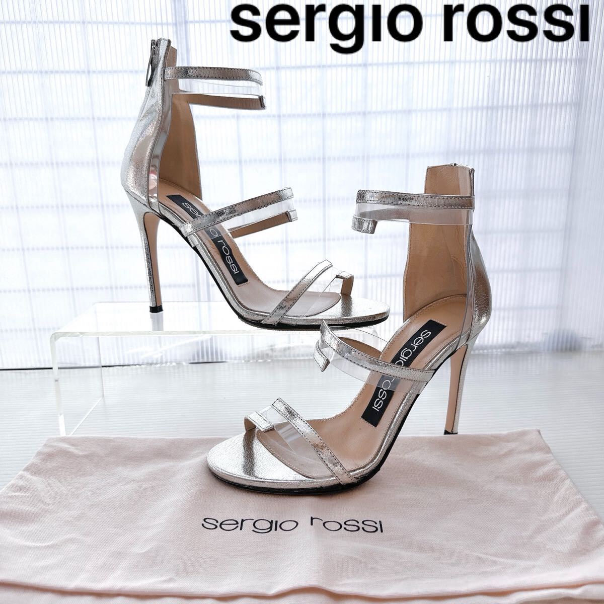 > sergio rossi セルジオロッシ ストラップ メタリック サンダル ハイヒール クリア シルバー 一回使用 靴 シューズ レーディス 34