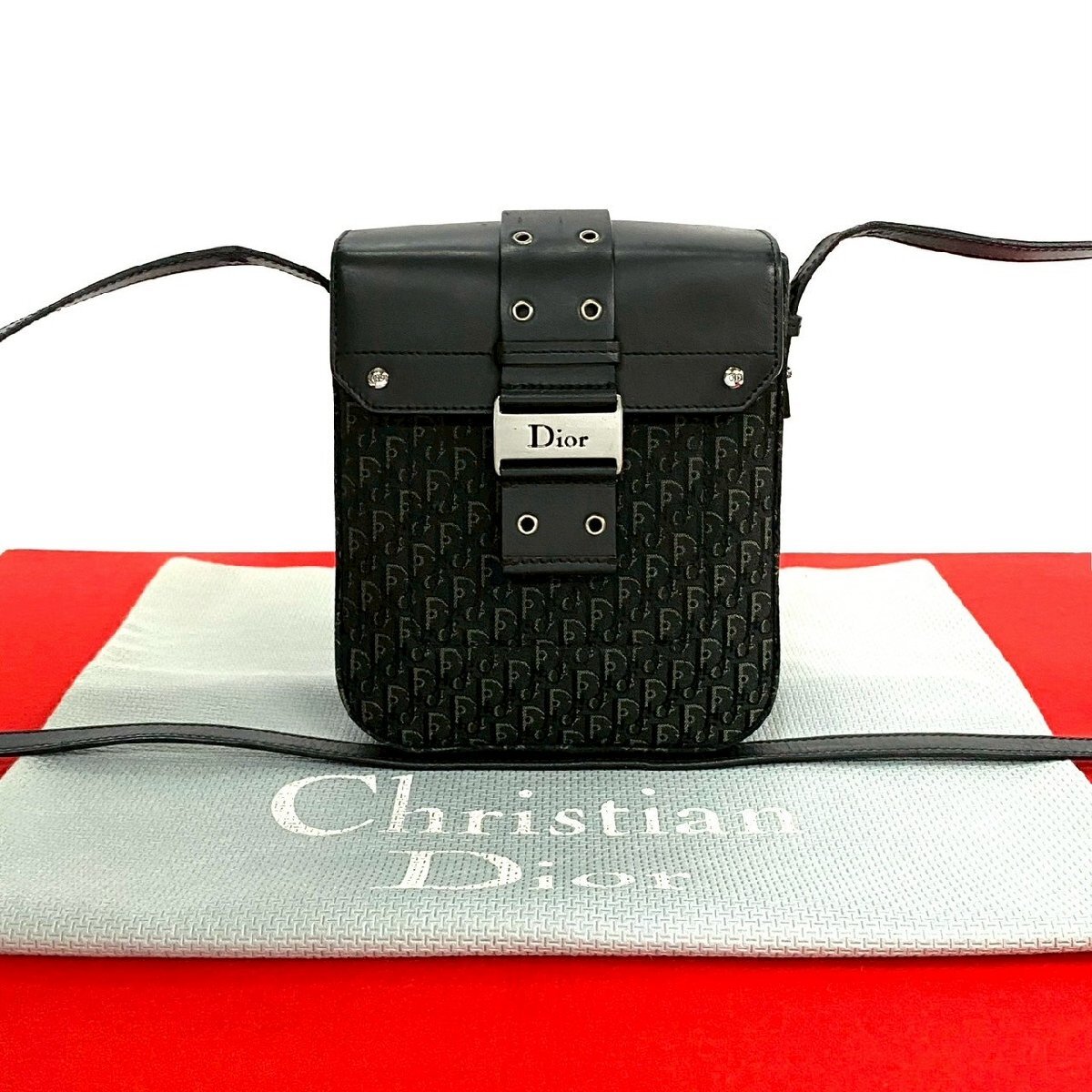 - 極 美品 Christian Dior ディオール ストリートシック トロッター 柄 ロゴ 金具 レザー 本革 キャンバス ショルダーバッグ ブラック 68928