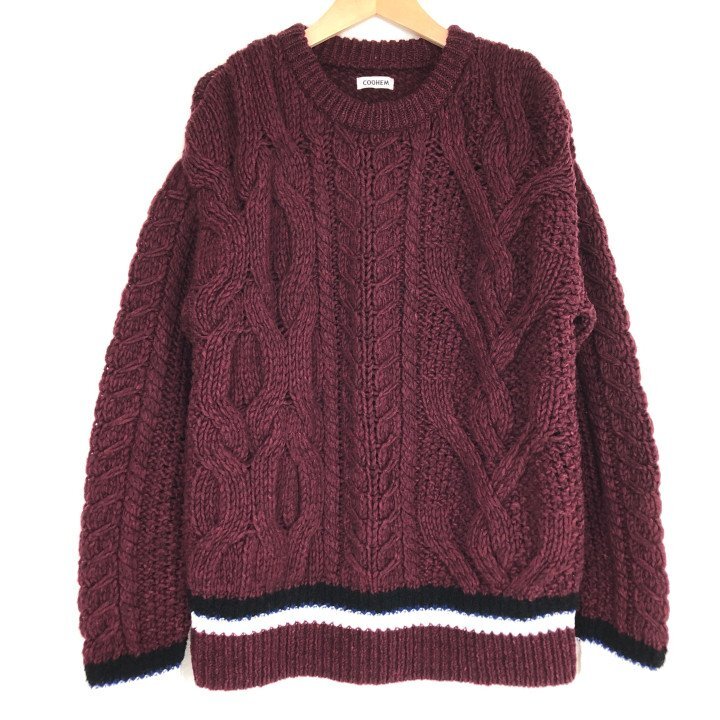 > COOHEM コーヘン yonetomi 米富繊維 スーパービッグアラン プルオーバー ニット セーター SIZE: L ボルドー MH632025051111