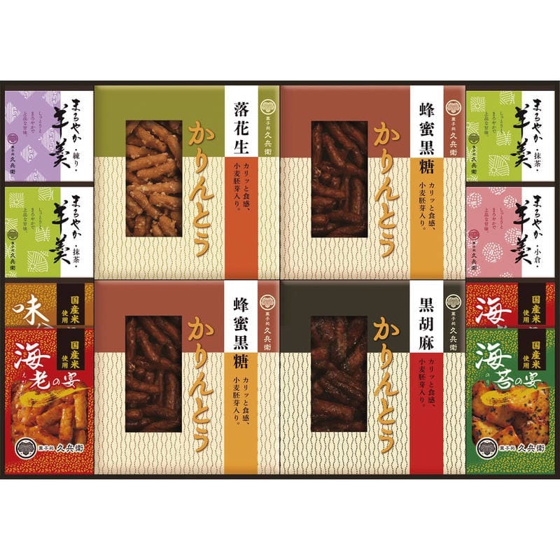 ▼▼▼▼▼▼注意事項▼▼▼▼▼▼・送料込み(送料800円が商品価格に含まれています) 一部地域では追加送料あり。・お取り寄せ商品です。弊社にて手配後、メーカー・卸業者からの直送になります。・まれにメーカー欠品、出荷遅延等が発生致します。問題発生時は別途メールにてご連絡致します。・配送方法の指定、日時指定、置き配、ギフト対応、他商品との同梱配送などは対応できません。・まとめ買いや複数購入の場合は通常より発送に時間が掛かる場合がございます・複数個口の場合、2階以上への搬入ができない場合があります。(その場合は1階での受け渡しとなります)・大型連休、お盆、年末年始などは発送をお休みさせていただく場合がございます・メーカー都合により、パッケージは予告なく変更される場合がございます・梱包用のダンボールはリサイクル品を使用させていただきます。・注文に関するご連絡(注文確定通知・発送通知など)はメールでご案内させていただきます※商品ページの内容について、少しでもご不明な点などがございましたら購入前に一度ご連絡ください▲▲▲▲▲▲注意事項▲▲▲▲▲▲〇商品説明昔ながらの素朴な味のかりんとう、夏でも冬でも楽しめるまろやかようかんと国産米だけで作ったあられを詰め合わせました。〇商品仕様【パッケージサイズ】537×42×383mm【内容】かりんとう:40g×4(蜂蜜黒糖×2、黒胡麻・落花生×各1)、あられ:12g×4(海老×2、海苔・味噌×各1)、羊かん:60g×4(抹茶×2、練り・小倉×各1)【アレルゲン】小麦・落花生・えび【生産国】日本【パッケージ形態】化粧箱入【保存方法】常温【賞味期限】製造日より約180日(出典:中久)