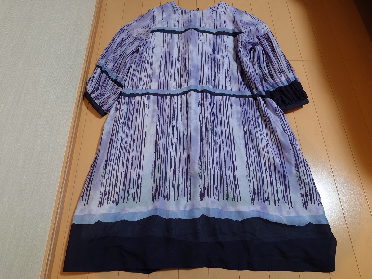 > keihayamaplus ケイハヤマプリュス 体型カバー7部袖ストライプ ワンピース F 紫 美品 大きいサイズ 横幅ゆったり