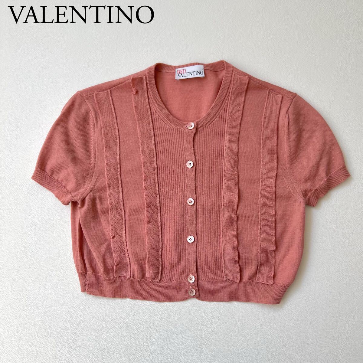 - 良品 RED VALENTINO レッドヴァレンティノ ニットカーディガン 半袖 ピンク トップス ショート丈 ボレロ レディース