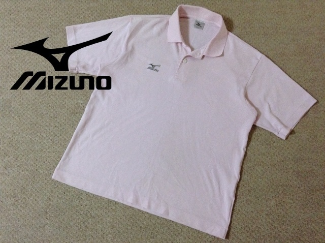 > ★中古★送料230円 日本製 ミズノ メンズ 半袖ポロシャツ ワンポイントロゴ ピンク スポーツ 部活 練習 トレーニング mizuno MADE IN JAPAN