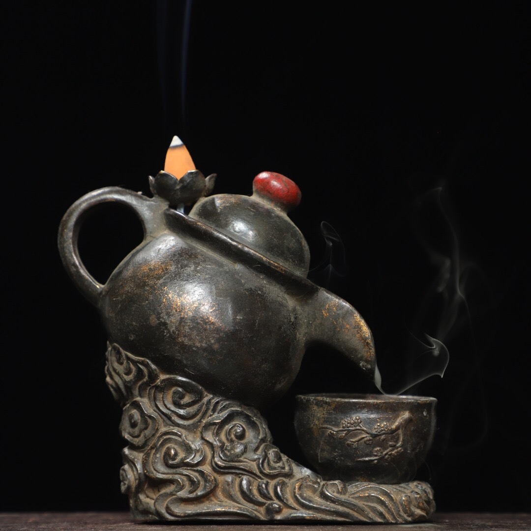 - 蔵友旧蔵出 銅製 拓金 梅花壺倒流香 密宗密教 供養品 仏教美術品