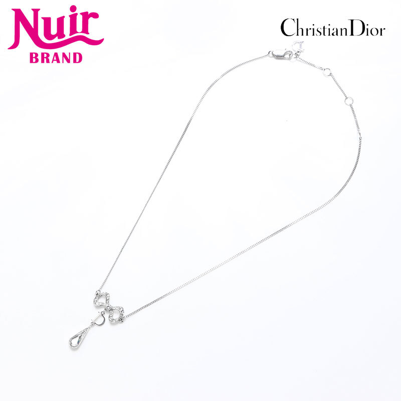 - クリスチャンディオール Christian Dior ネックレス ラインストーン リボン ロゴ シルバー