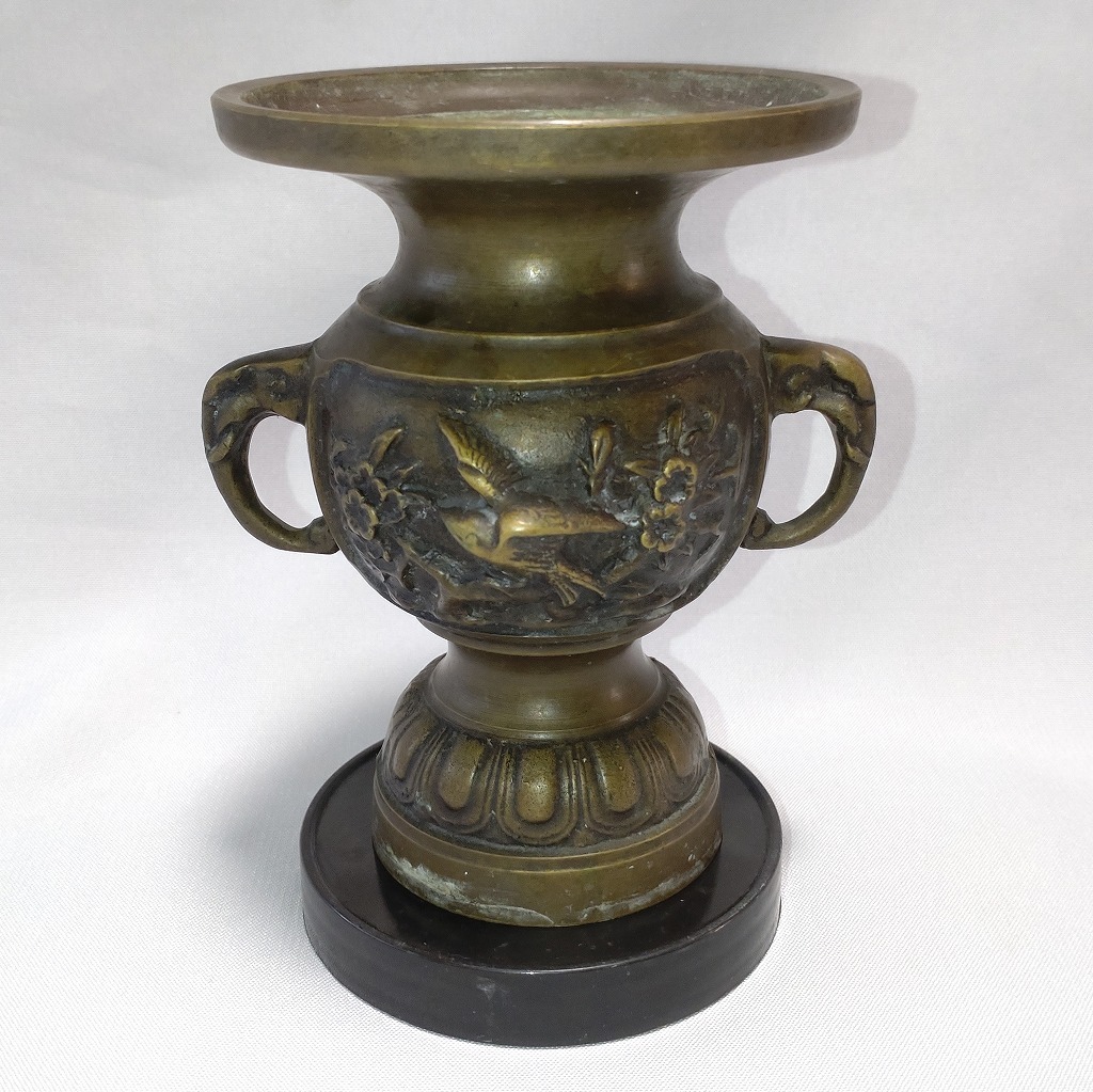 - 仏具 真鍮製 花入 花立 花瓶 花器 鳥と花 最大幅約105㎜ 直径約90㎜ 高さ約125㎜ 【0514】s r b