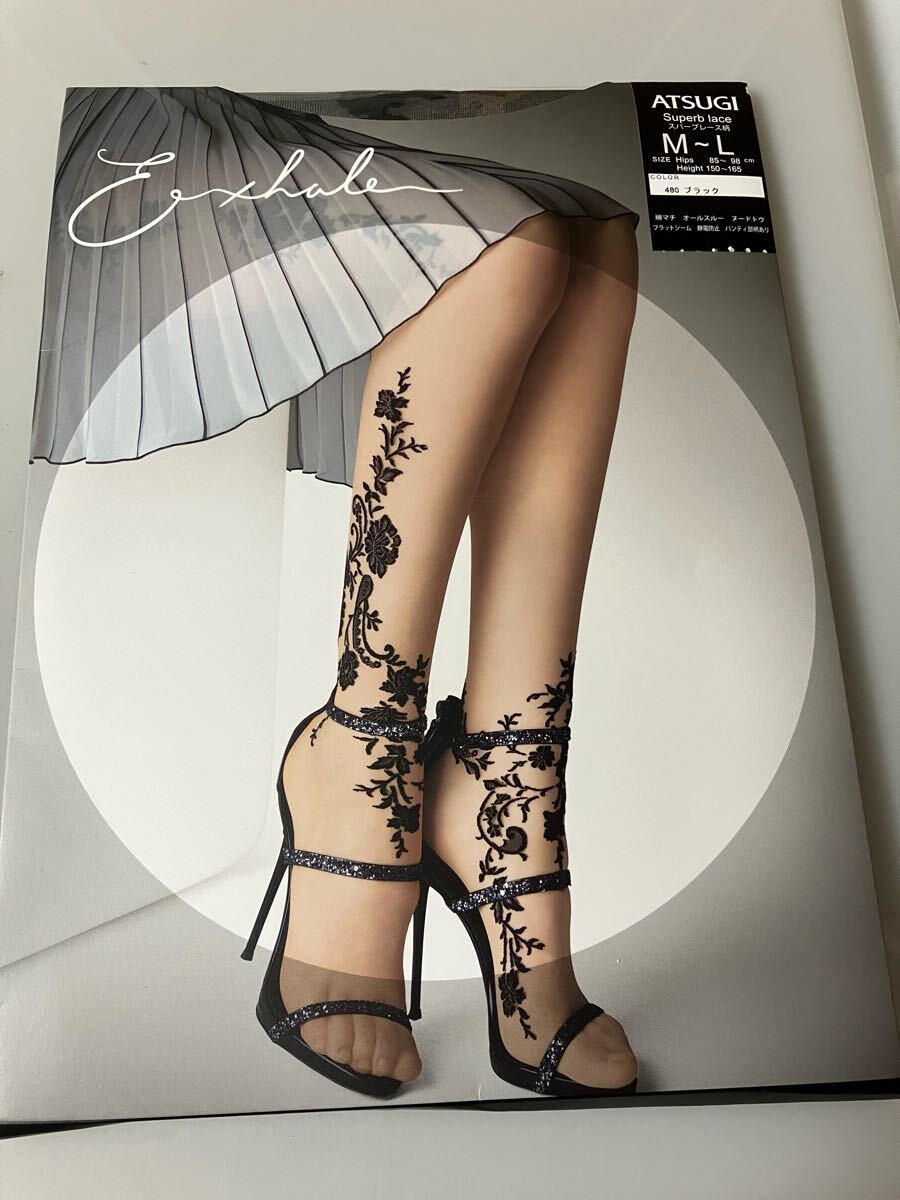 - 【送料無料】 atsugi exhale panty stocking スパーブレース柄 ブラック パンスト アツギ パンティストッキング 黒 デザイン 模様 美脚