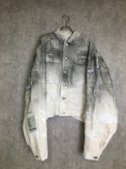 > 日本製 B1ARCHIVE ビーワンアーカイブ distressed ecru トラッカー ジャケット ダメージ加工 ホワイト M 33911182#2