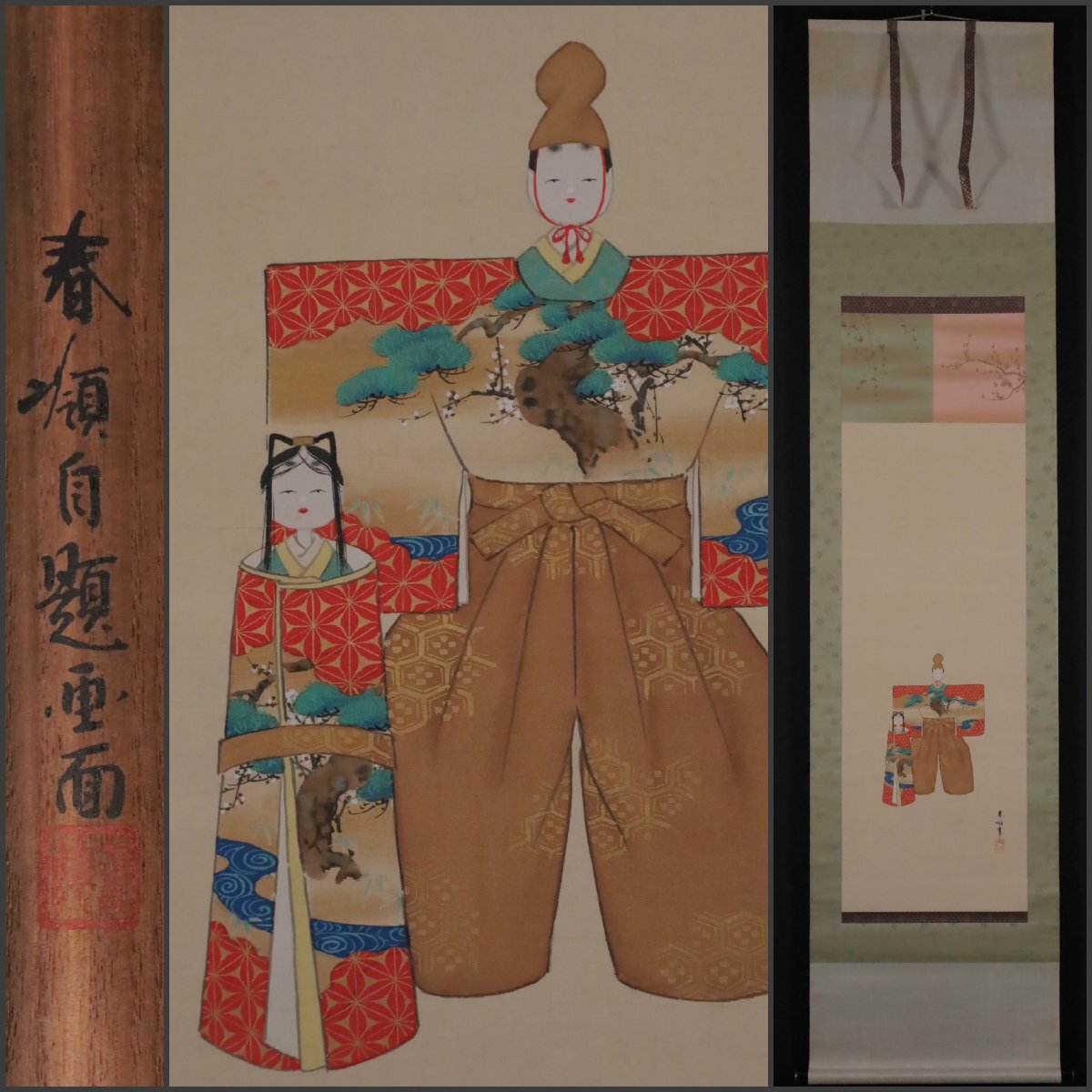 - 【模写】吉】12364 大塚春嶺 雛図 共箱 谷口香きょう師事 大阪の人 風俗画 大和絵 茶掛け 茶道具 掛軸 掛け軸 骨董品