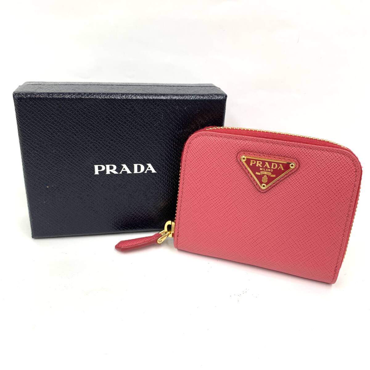 - D0801 新品未使用!格安! PRADA プラダ サフィアーノ 三角ロゴ ラウンドファスナー コインケース 財布 レザー ピンク ゴールド金具