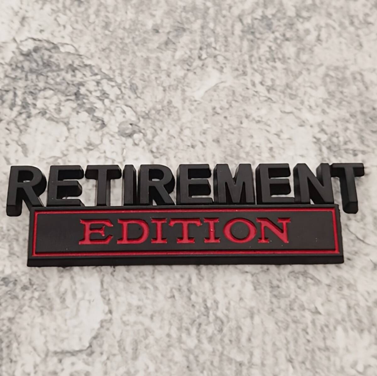> エンブレム エディション RETIREMENT 退職 リタイアメント 金属 ブラック レッド メタルステッカー 立体 10cm 車用 ロゴ 外装 シール t5237