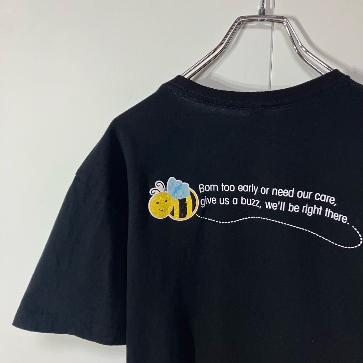 - 古着 ハチ プリント クルーネック 半袖 Tシャツ ブラック S