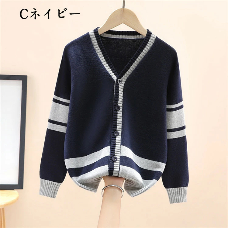 - カーディガン キッズ 子供 男の子 綿100% コットン 長袖 トップス ニットカーディガン カーディガン ニット 25-22102/ネイビー160cm