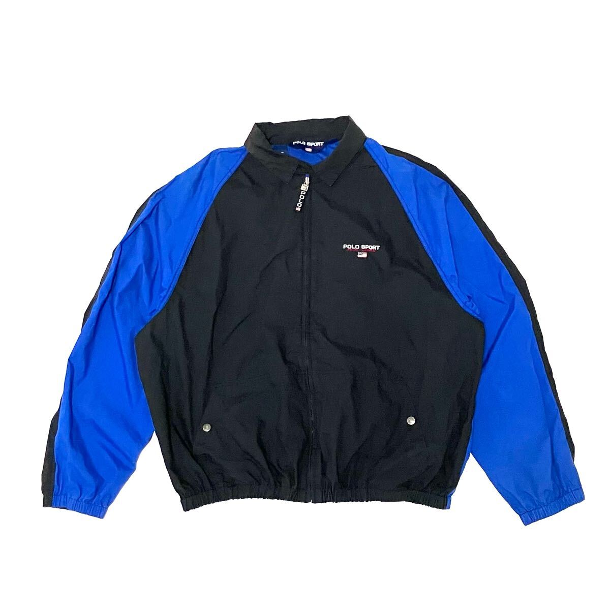 > XL 美品 POLO ポロ スポーツ 90’s 90年代 コットン ジャケット ウインドブレーカー スイングトップ ラルフローレン アメリカ製 黒x青