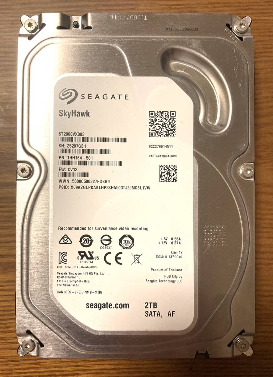 - 【状態◎】Seagate シーゲート Skyhawk シリーズ ST2000VX003 3.5インチ HDD 2TB(セキュリティシステム向け)