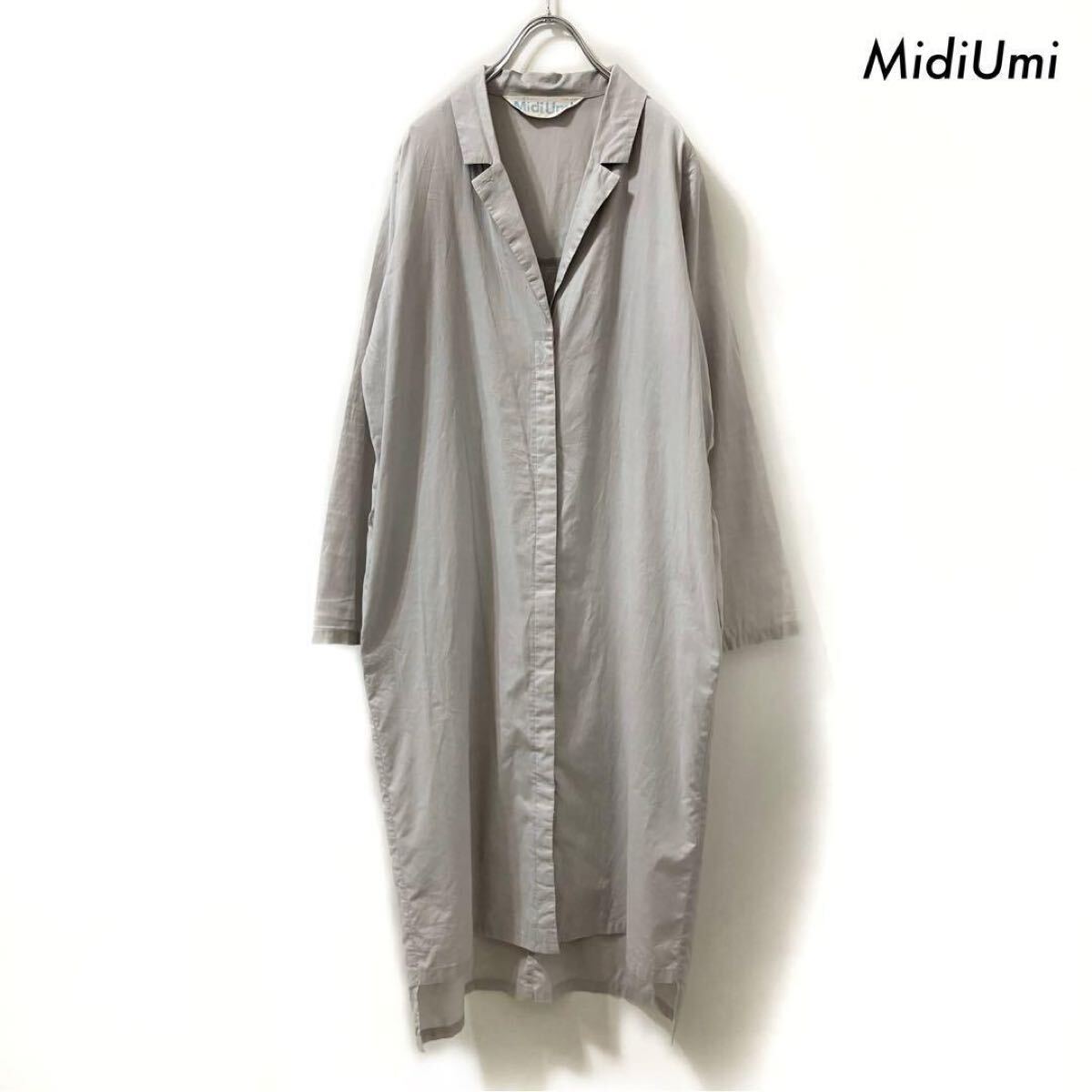 - 【送料無料】MidiUmi ミディウミ★長袖ワンピース シャツガウン テーラードカラー グレー