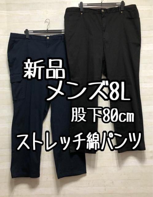 - 新品☆メンズ8L股下80cm黒紺ストレッチ綿パンツ2本!カーゴパンツ☆D872