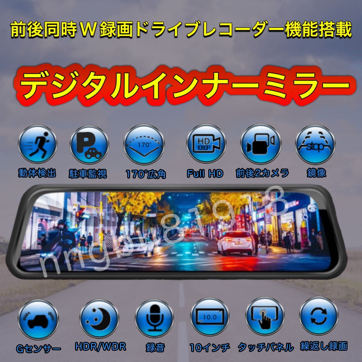 - 高機能 デジタルインナーミラー ドライブレコーダー 2カメラ ミラー型 ドラレコ 前後カメラ バックカメラ 10インチ大画面1080P 広角