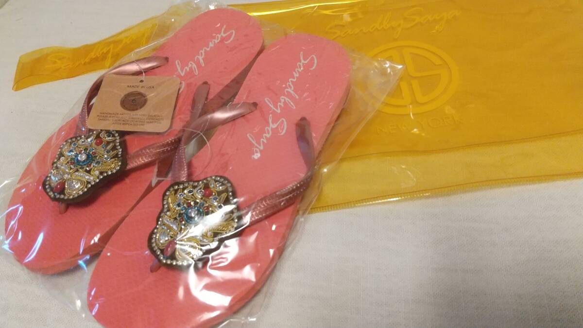 - 【未使用】Sand by Saya レディース ビーチサンダル フラット 23.0cm NEW YORK インポートブランド バッグ付 ピンク