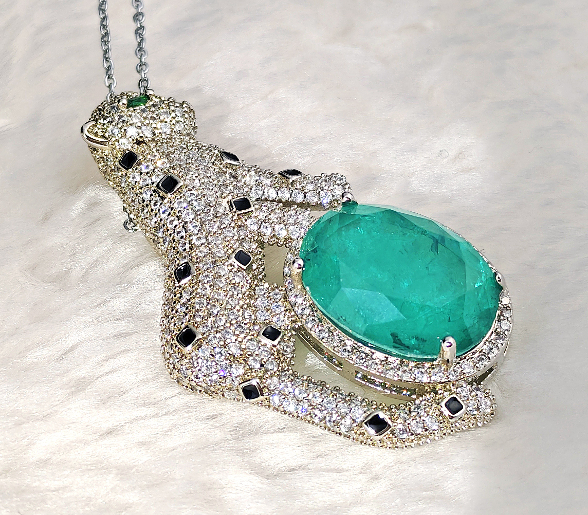 > N2505138◆Bigstone◆【ヒョウ*パライバ色】存在感抜群*魅力的な風格*高級感の光沢*ファッションなネックレス
