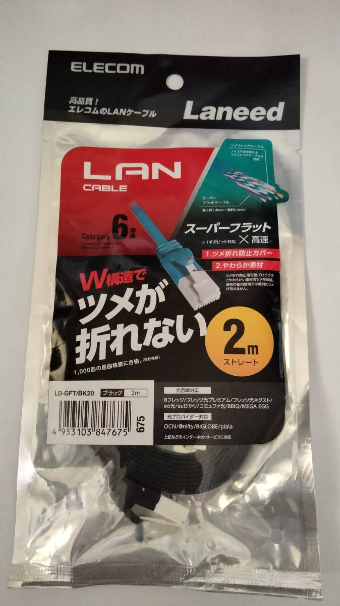 - ELECOM フラットLANケーブル Cat6準拠 ブラック 2M プロテクタと新素材コネクタ採用のダブル構造で通常の使用環境では絶対にツメが折れない
