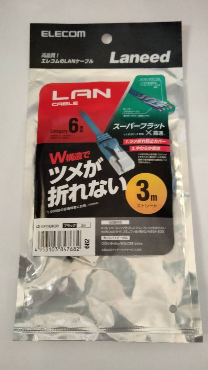 - ELECOM フラットLANケーブル Cat6準拠 ブラック 3M プロテクタと新素材コネクタ採用のダブル構造で通常の使用環境では絶対にツメが折れない