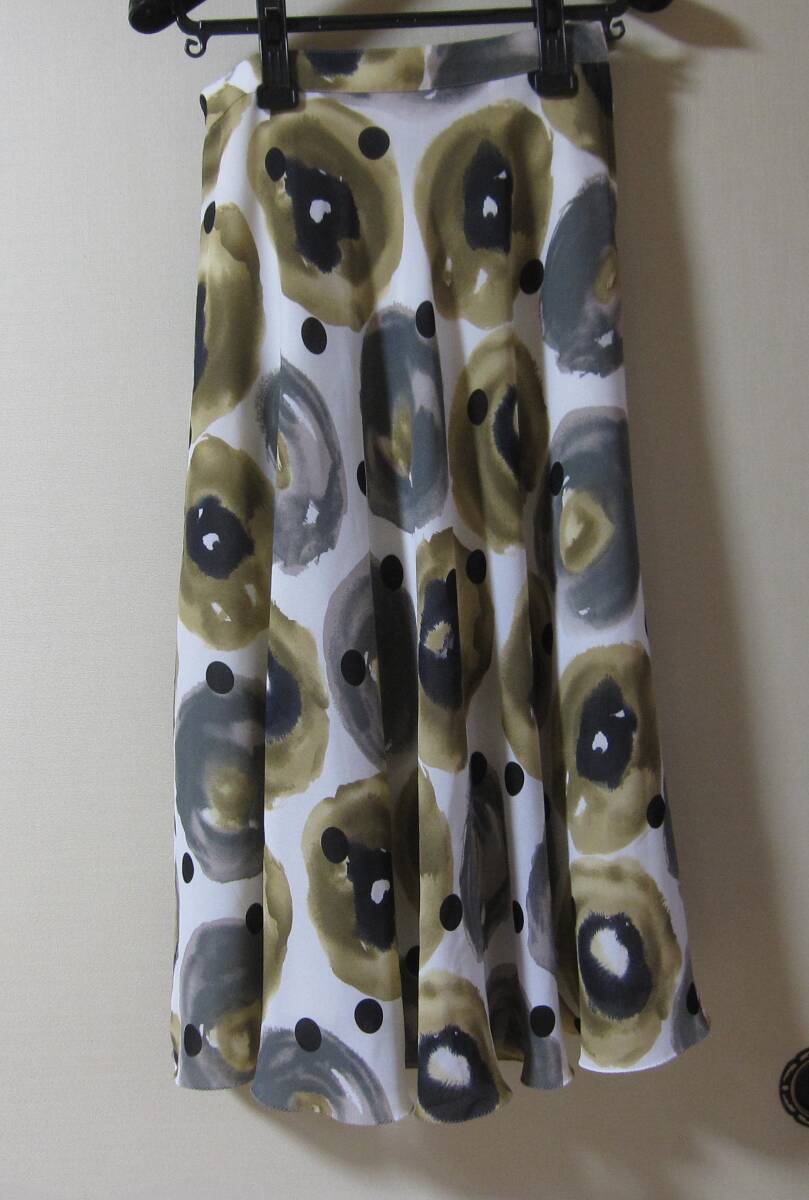 > フレアースカート M 9号相当 上物 ジョーゼット素材 ブティック店購入品。グレー&茶色の絵画風柄 froreson ㈱キャラバン