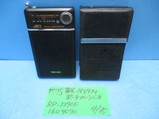 - P175 東京芝浦電気 AM/FM ポータブルラジオ ケース付属 RP-1290F 昭和当時物 現状にて